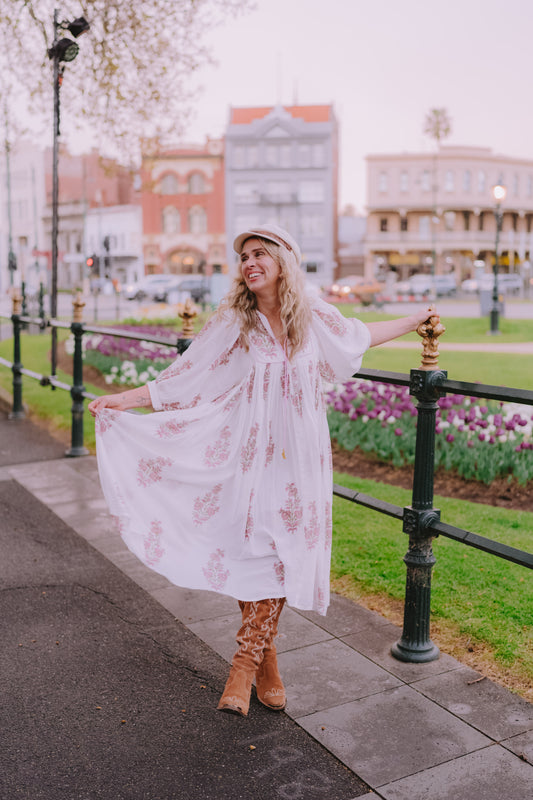 In true bohemian spirit, our collections are designed for those who cherish authenticity and the beauty of imperfection. Using deadstock materials and creating in small batches, we offer beautiful and unique, pieces that resonate with a slow fashion mindset. Our clothing tells a story — a blend of heritage, artistry, and sustainability. Whether you're drawn to the soft flow of a block-printed dress or the relaxed ease of our boho-inspired silhouettes, each piece reflects a lifestyle rooted in conscious choices and a love for the world around us.